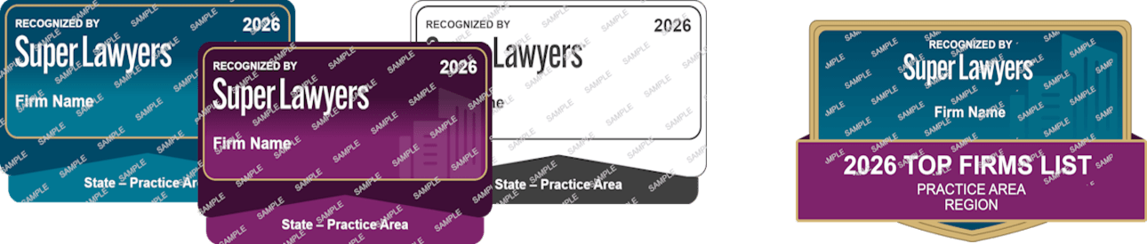 - Digital version only. For purchased Super Lawyers print advertisements, an optional print-ready version of this badge is included at no additional cost for use within the ad.
